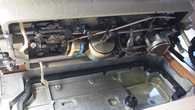 工業用ミシンの下はプールのようになっていて、ここにオイルがひたひたに入ってます。